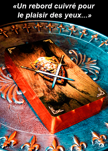 Ce jeu, je l’ai imaginé de la manière suivante : fabriqué à partir de matériaux de qualité supérieure, un jeu de tarot « sans équivalence », un papier plus résistant aux déchirures, d’une plus grande durabilité et offrant un glissement qui favorise sa manipulation et un boîtier original qui témoignerait de cette recherche d’excellence. Ce sont les critères qui m’ont motivé tout au long de sa réalisation.