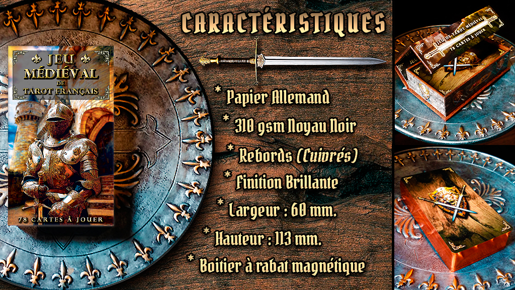 Avec ses illustrations au thème moyenâgeux, ce nouveau jeu offrira une expérience de jeu des plus immersives et séduira autant les joueurs de tarot que les adeptes des rencontres médiévales. J’ai le souhait que ce tarot médiéval devienne un prétexte attrayant pour des rencontres entre amis, favorisant des échanges en tête-à-tête si appréciés.