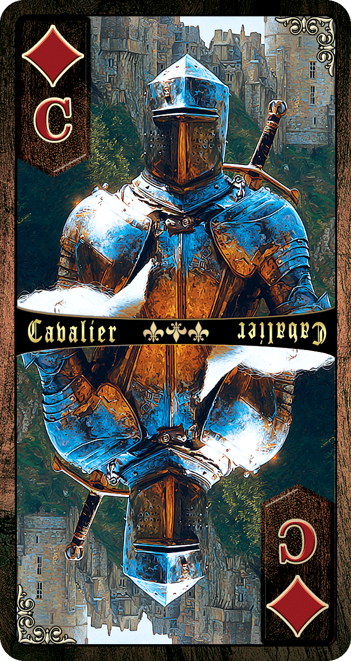 Joueur de tarot français depuis près de 30 ans, j’imaginais créer un jeu de tarot personnalisé avec comme thème l’époque médiévale, car j’ai toujours aimé les histoires de rois et de chevaliers. Je me suis enfin décidé au printemps 2023 à me lancer dans cette aventure. Plusieurs prototypes se sont succédé et ont été testés en situation de jeu avant d’arriver au produit final que vous voyez aujourd’hui.